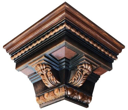 Measurements: 7-1/2 in. Face x 5-1/4 in. Height x 5-1/4 in. Projection x 8-3/8 in. Length, (lower side / each piece). Finish: Antique Bronze, Antique Copper, Wood Graining. Suggested Ceiling Height: 8 – 12 ft. Material: Polyurethane. NOTE: As our hand-painted Crown Moldings are NON-RETURNABLE, we highly recommend you to buy a sample of this product before placing your order. DISCLAIMER: We cut corners angle perfectly, but in most cases walls are not, that’s why our corners are shipped in two separated pieces, as usually they must be adapted to the wall and makes the job easier. -
