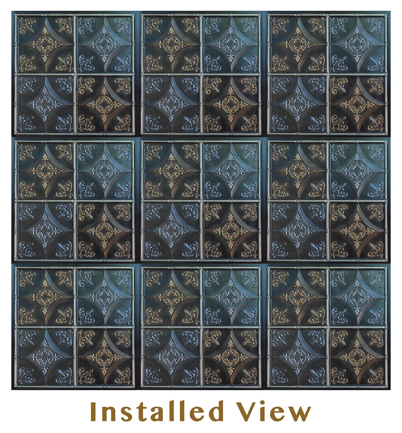 Just follow these four simple steps to install our 24″ x 24″ overlapping edge decorative ceiling system. It is really quick and easy to glue up faux-tin ceiling tiles.